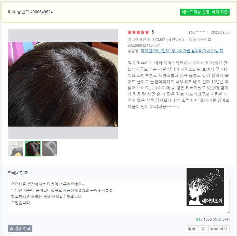 | 여자정수리 부분가발 미용실에서 커트와파마후 아무도 가발인지 모르는 정수리 탈모커버 제품 염색 안해도 되는건 덤!! (0) | 2022.12.30 |